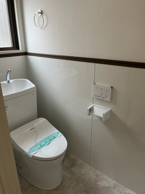 手洗い場や鏡は無くし、手洗い付便座で施工しました。