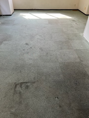 汚れの目立ったタイルカーペットから温もりのある木目調のクッションフロア材で床全面リフォーム。