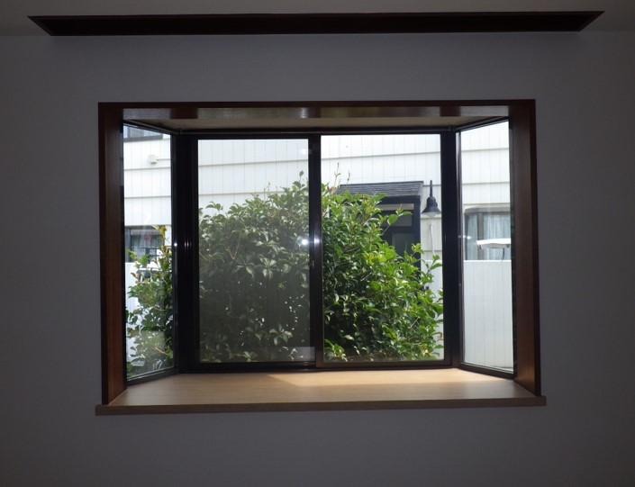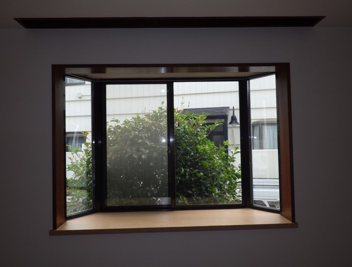 上でご紹介した掃き出し窓(下が床に接する大きな窓)以外にも小さなFIX窓や出窓にも施工しました。