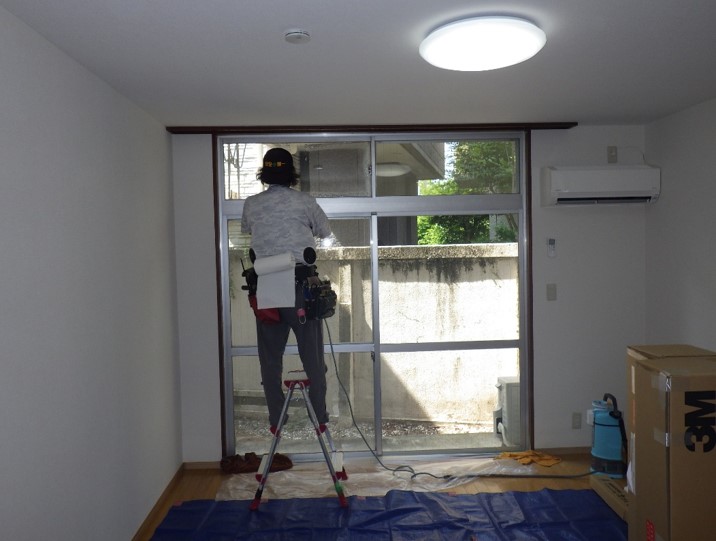 | 施工前 | 施工中 まずは窓を綺麗に拭きます |