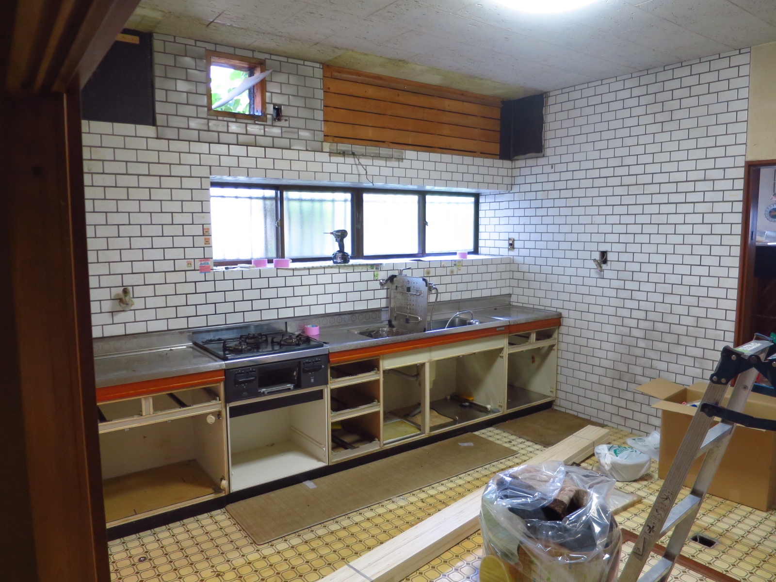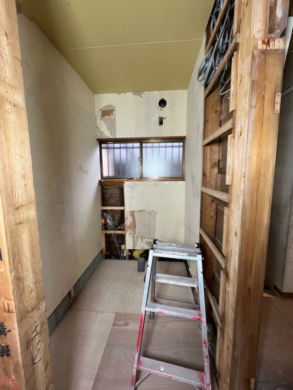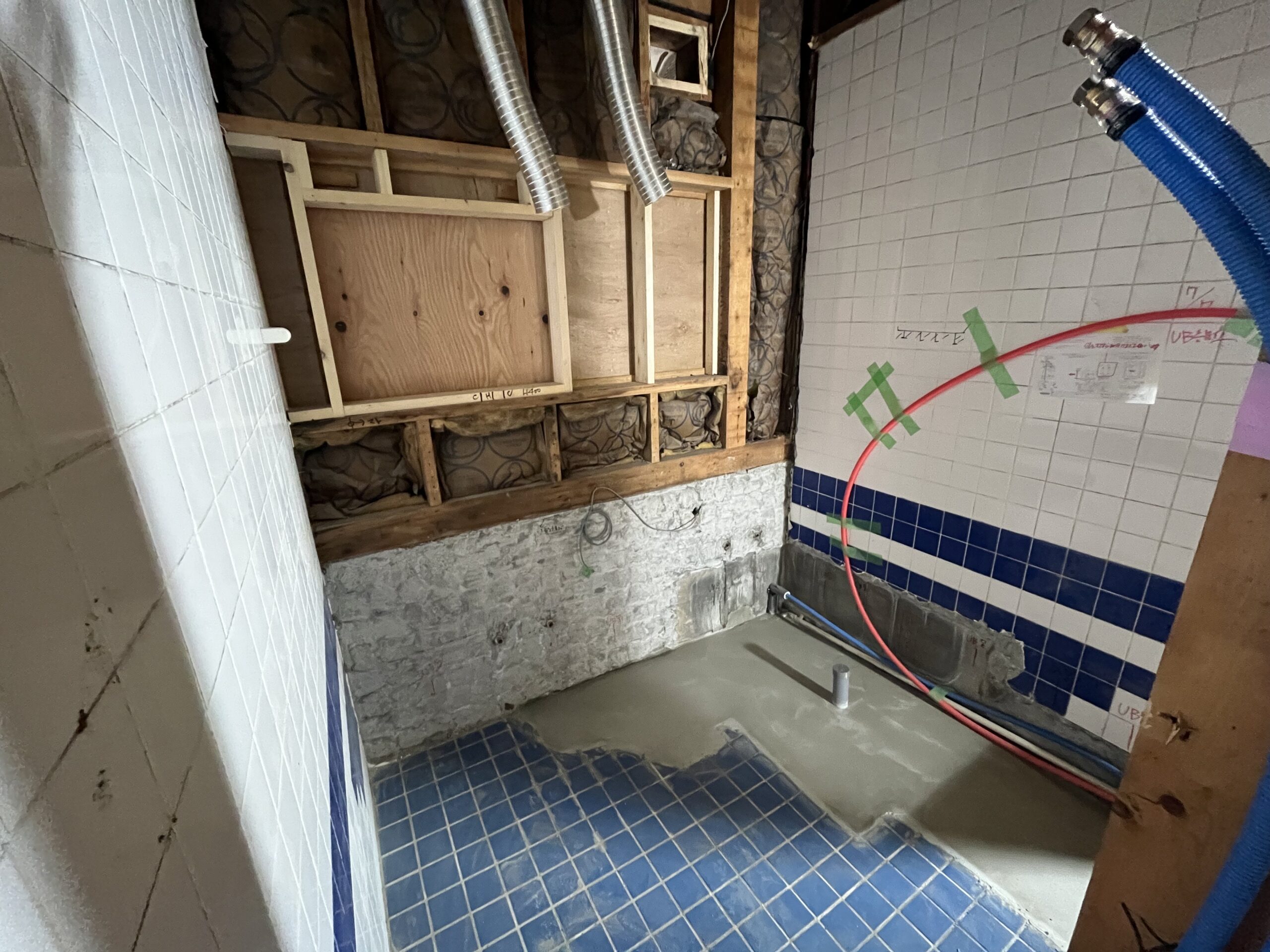 | 施工前(段差がすごい!) | 施工前(浴槽) | 施工中 |
