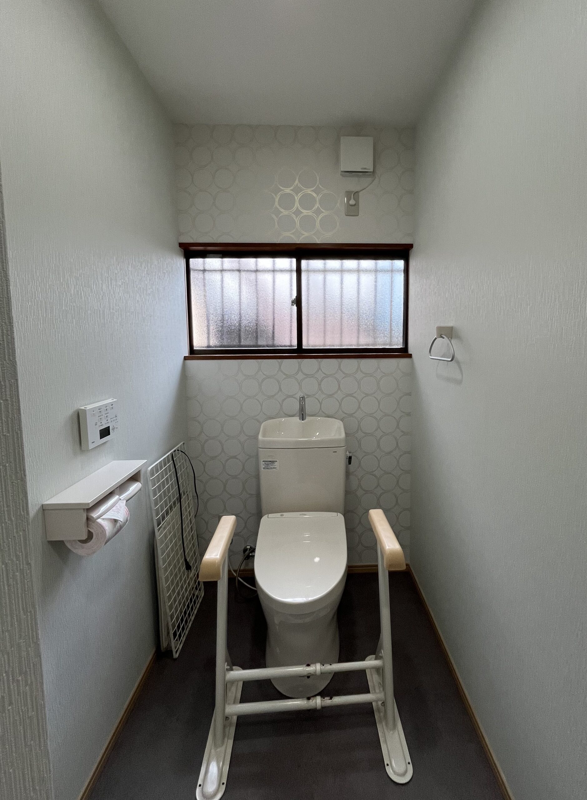 トイレは正面にアクセントクロス採用、クロスはお施主様が選びました。