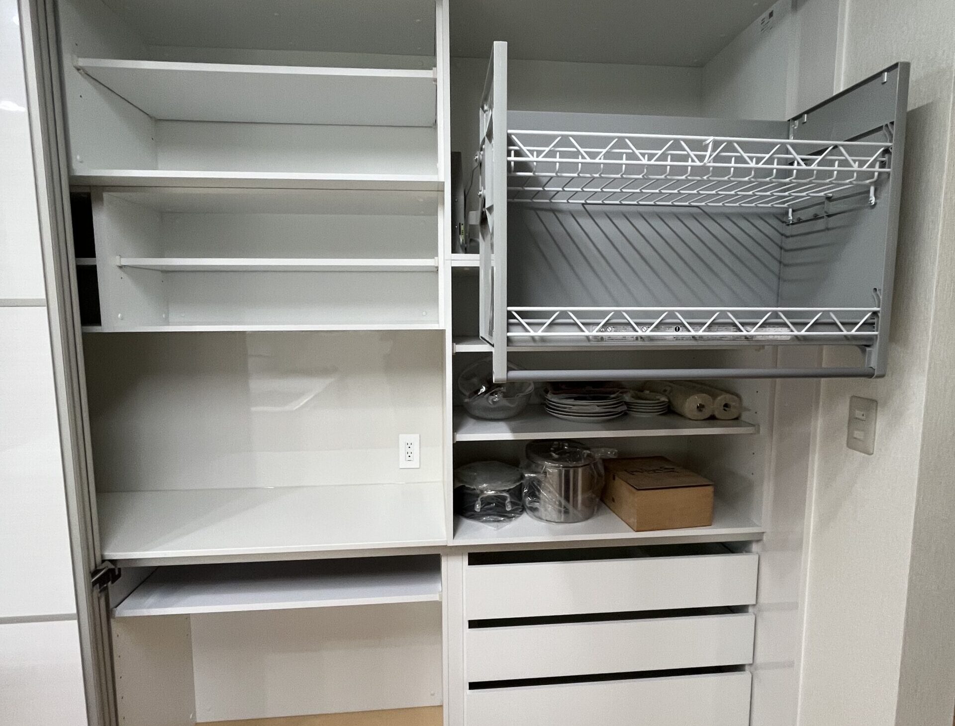 上の棚は一部バーで下ろしやすいくなっています。