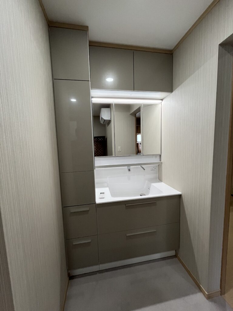 コロナ禍で進化したタッチレス水栓やタッチレスLED照明など嬉しい機能が満載の洗面台です。