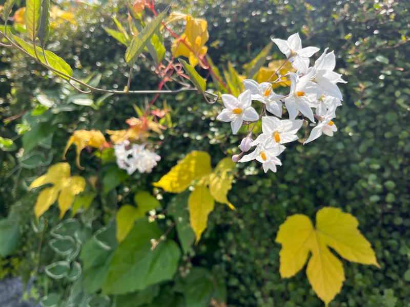 | ツルハナナス 夏にたくさん咲き壁面緑化を明るくしてくれる存在 |