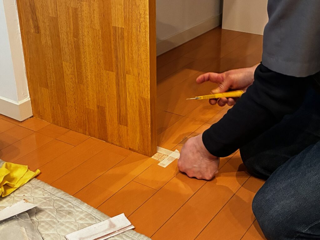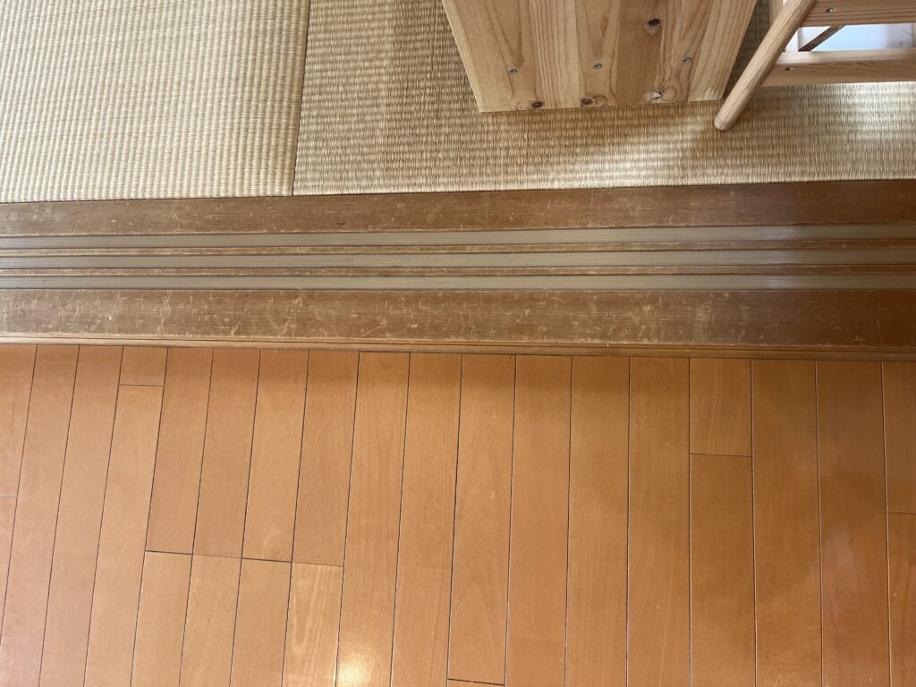 建具が床の下まで施工されていたため床に切りこみが入っていました。
