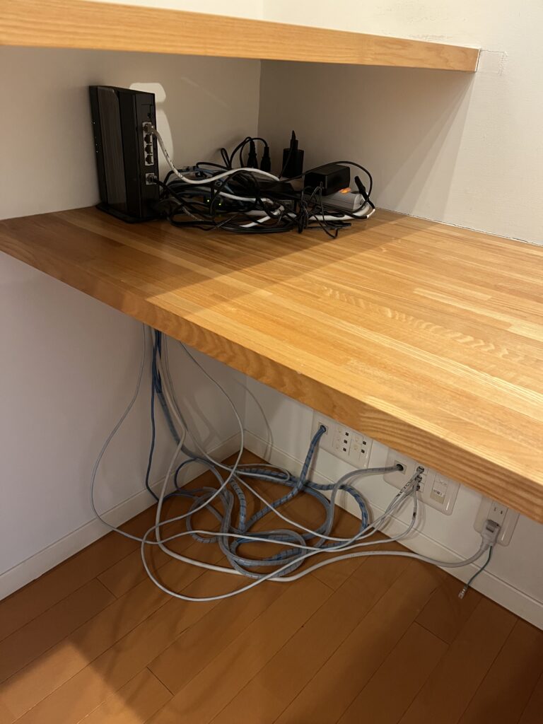 配線を隠すこの白いボードもオーダーメイド、世界に一つです