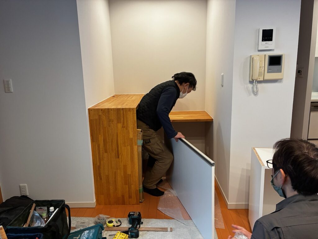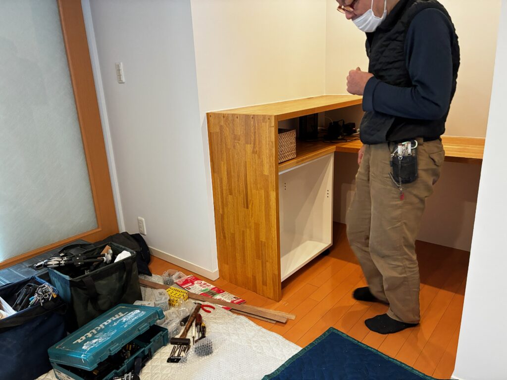 家具設置までに大工職人・塗装職人・電気工事士も対応、ここだけで完成までに5段階工事対応しています。
