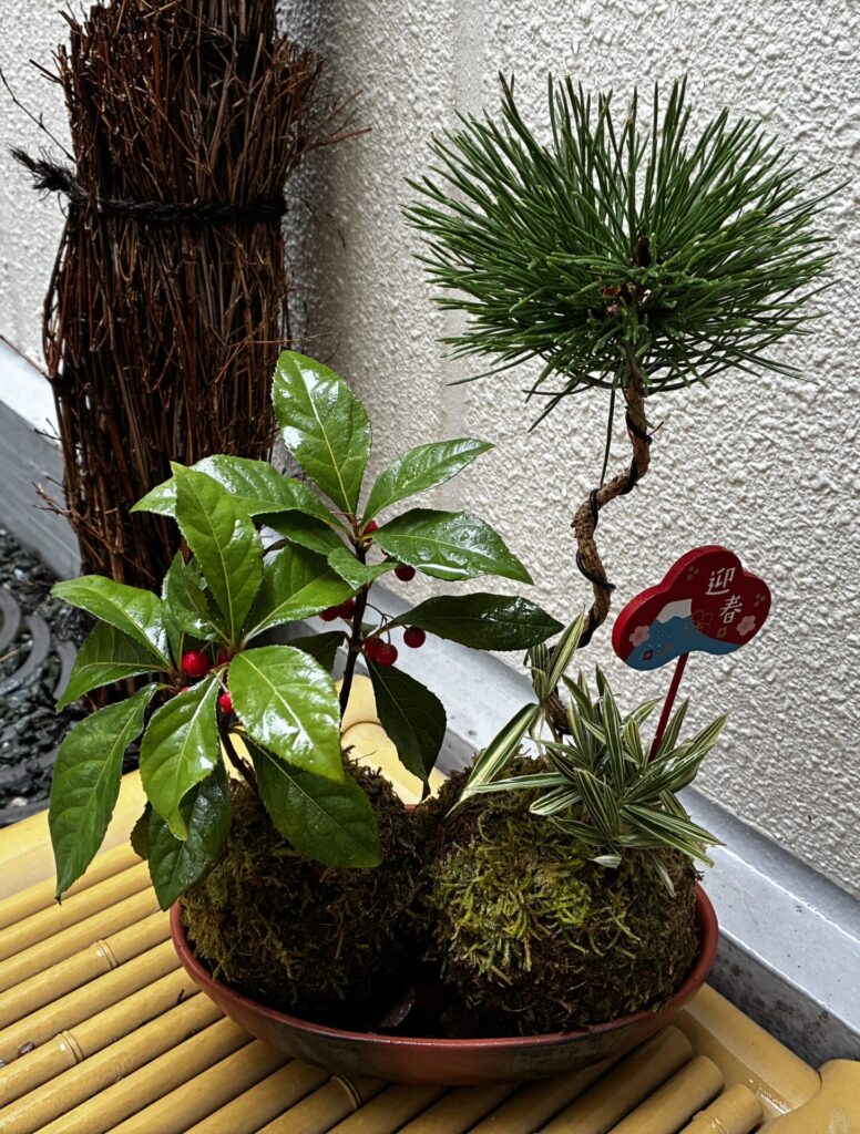 坪庭を手入れした日がちょうどクリスマスイブでしたが、「迎春」と書かれた苔玉をお施主様も気に入ってくださり「お正月準備できちゃった!」と喜んでくださいました。