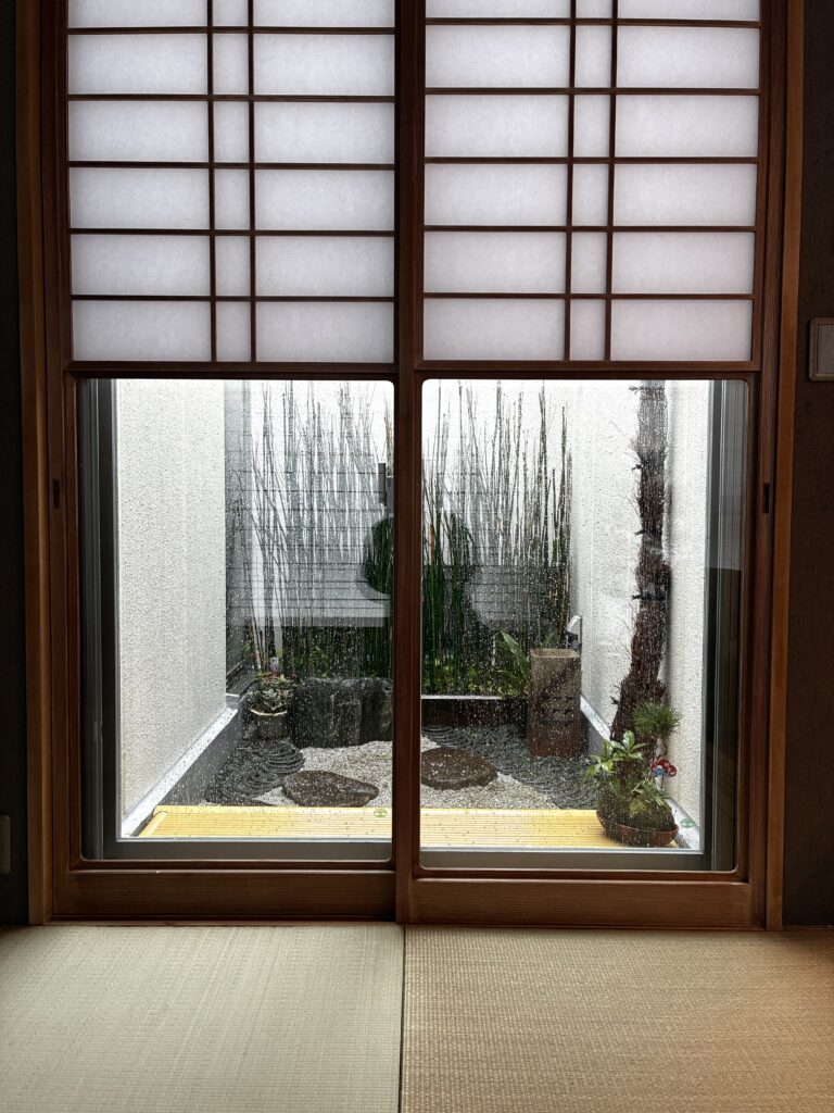 雨の坪庭も雰囲気がありました