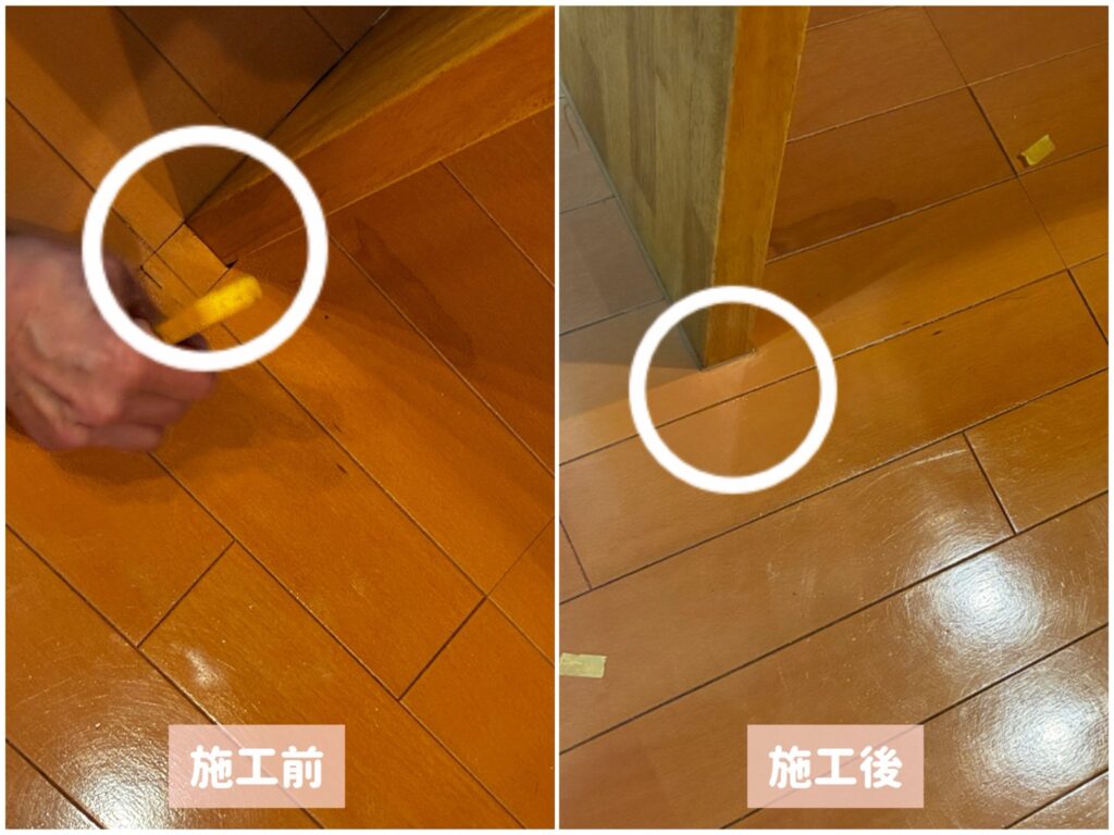 切り込み跡を消すべく、まずは粘土状のパテを乗せ、丁寧に床に合わせ切り込み跡を消します。